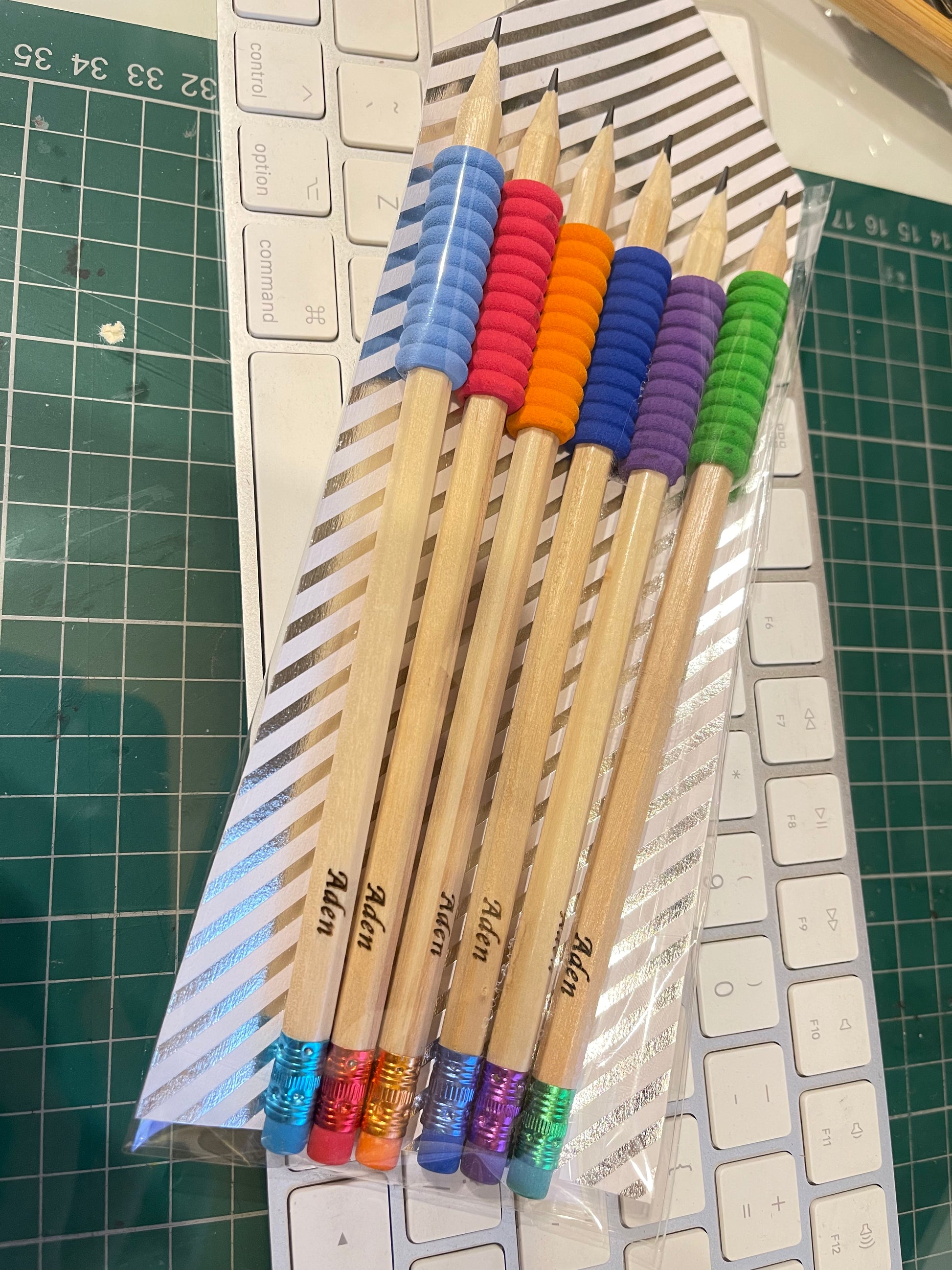 Personalised Engraved Bamboo wooden pencil with coloured rubber grip